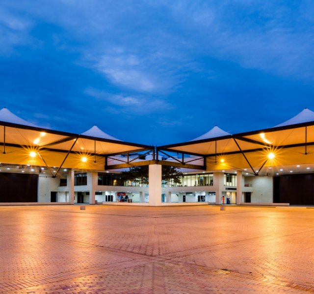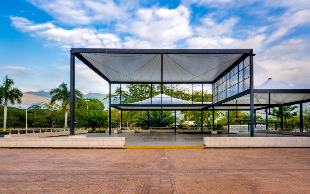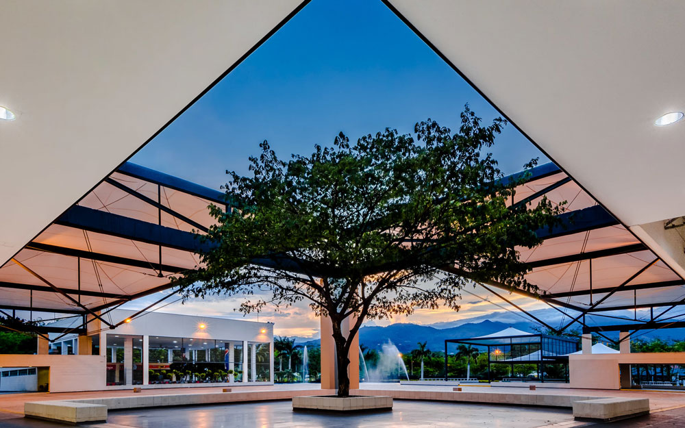 Espacio abierto, con capacidad de hasta 2.900 personas y 2.685 m² que dan sensación de inmensidad y horizonte. Ubicada en el centro de la L que forma arquitectónicamente la edificación, permite el goce de las condiciones bioclimáticas y la integración estratégica con los Pabellones Manuelita y Fenalco.